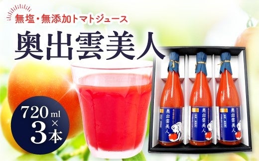 奥出雲の自然豊かな環境で育った新鮮なトマトを使用し、無添加・無保存料で丁寧に搾汁した100%ピュアジュース「奥出雲美人トマトジュース」の2本セット、3本セットがふるさとチョイス限定のお礼の品として全国のふるさと納税寄付者に提供できるようになりました。