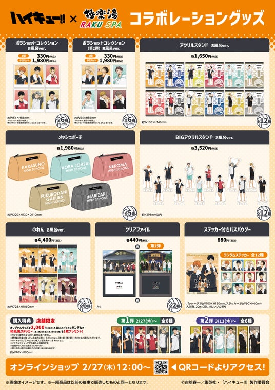 アニメ「ハイキュー!!」×極楽湯・RAKU SPA第二弾コラボキャンペーン"最高にハイなキュー日"が開催!湯上り館内着姿の描き下ろしビジュアルを使用した新作グッズが登場!