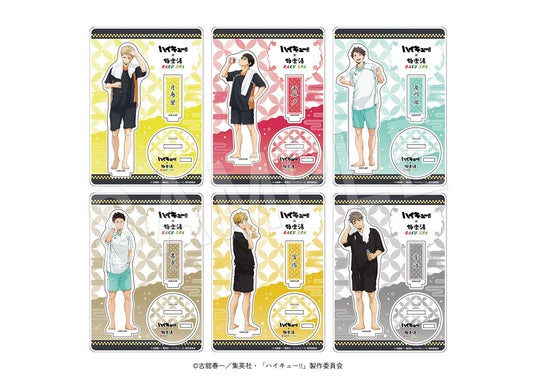 月島や西谷たち6人の湯上り館内着姿の描き下ろしビジュアルを使用した「アクリルスタンド」や、まんまる可愛い「もちころりん」、各校のユニフォームをイメージした「館内着レプリカ」などコラボならではの新作アイテムが多数登場!また、前回コラボでも好評だったコラボアイテムも再販が決定!