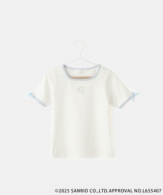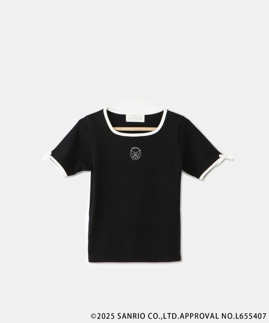 鎖骨の映えるスクエアネックデザインで、大人な雰囲気のテレコトップス。フロントに、「シナモロール」と「クロミ」の刺繍を施したトレンド感もポイントです。