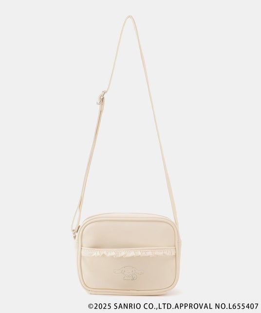 フロントのフリルポケットに、「シナモロール」と「クロミ」のデザインをあしらっています。「ミニボストンショルダーバッグ」とのリンクコーディネイトもおすすめです。