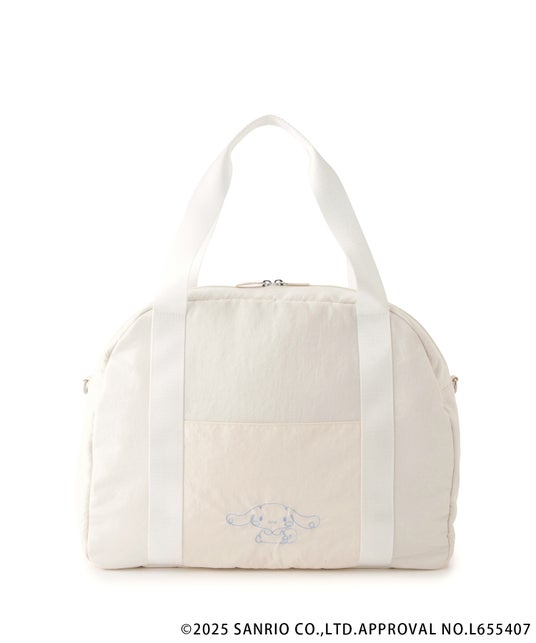 さりげない「シナモロール」と「クロミ」のワインポイントがおしゃれな、手持ちと肩掛けができる2WAYバッグ。見た目以上に大容量である一方、マチ自体は控えめなので持ち運びやすく、旅行のサブバッグとしてもおすすめ。お気に入りのチャームなどを付けられるストラップホール付き。