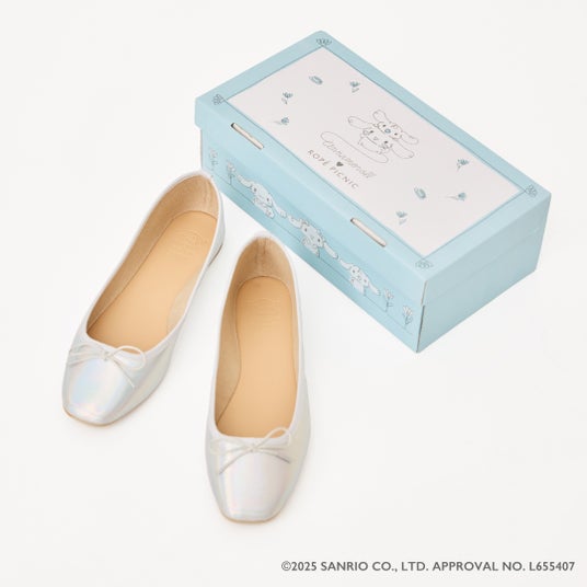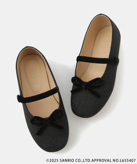 「シナモロール」と「クロミ」がインソールにデザインされた、キッズ用バレエシューズ。