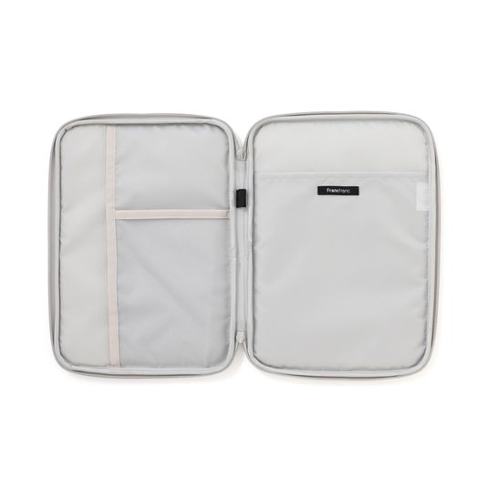 タブレットのほか、ペンや領収書、ノートなどを用途ごとに分けて収納できるので出先でも活躍します。