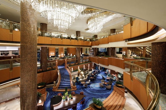 シャンデリアが輝く吹き抜けのロビー