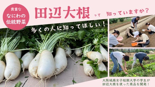 「田辺大根」は、大阪府及び大阪市が共同で認証した「なにわの伝統野菜」の一つで、同学がある大阪市東住吉区で栽培されています。同学では、学生が種まきや収穫に参加するなど、田辺大根の生産者と交流を深めながら、2018年から毎年レシピコンテストを開催し、田辺大根の新たな魅力を発信しています。