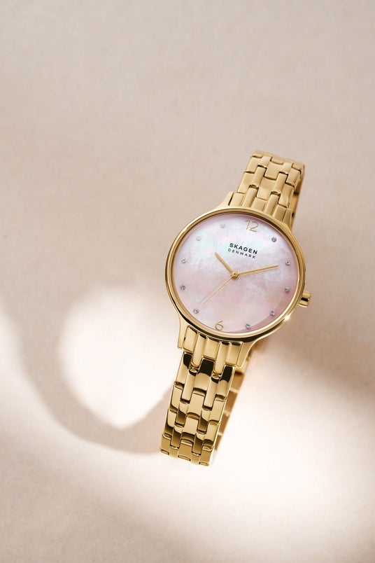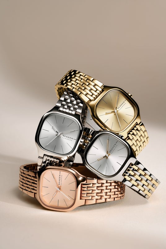 SKAGENの2025年のSeasonal colorはBlush(『頬を赤らめる』という意味の単語で、ほんのり頬が赤くなるような色合いのこと)とROSE。Blushカラーを採用した新作ウォッチは、柔らかく繊細な色合いのBlush colorをマザーオブパール文字盤に採用しました。スカンジナビアの海辺を思わせる穏やかな印象を、定番人気のANITAとクラシックなレクタンギュラーケースのHAGENの2種で展開します。