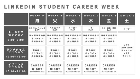 「LinkedIn Student Career Night」、そして最終日の大規模オフラインイベントの3つの要素で構成されます。