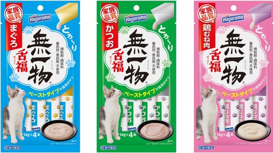 はごろもフーズ株式会社(本社:静岡県静岡市 社長:後藤佐恵子)は、素材と水と米粉だけで作ったスティックタイプの猫ちゃんのおやつ『無一物舌福(ぜっぷく)』3種を発売します。