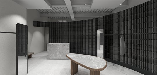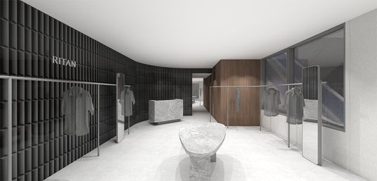 内装は国内外の数多くのアパレル店舗や下北沢のReload、今話題のNOT A HOTELなどを手掛けたGENERAL DESIGNに設計を頂きました。モノトーンのカラースキームの中にRITANのテーマの一つである女性らしい曲線美をR形状のタイルの壁や流線型のミラーやテーブルで表現しています。