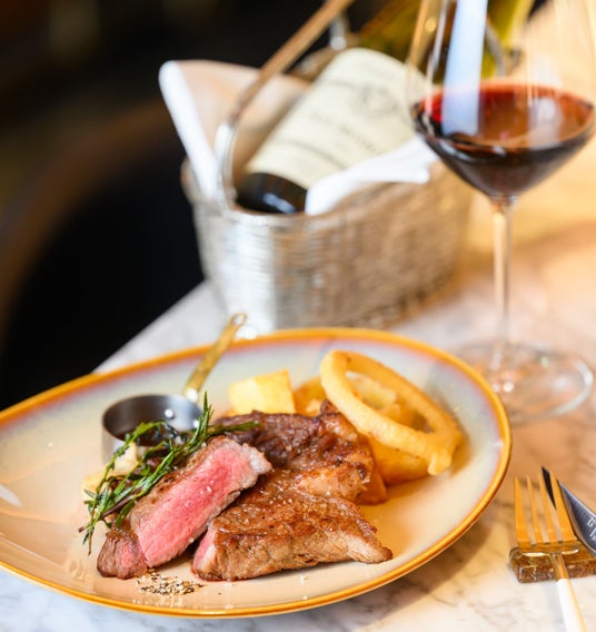 中でも看板メニューは近江牛サーロインのステックフリット。松坂牛、神戸牛と並び、三大和牛のひとつである近江牛は、料理人たちの間で愛される人気黒毛和牛ブランドの一つ。甘く優雅な脂身と柔らかくきめ細かい繊細な肉質が特徴で、口に入れた瞬間にとろけてしまうほど美味しいお肉をステーキでご堪能ください。