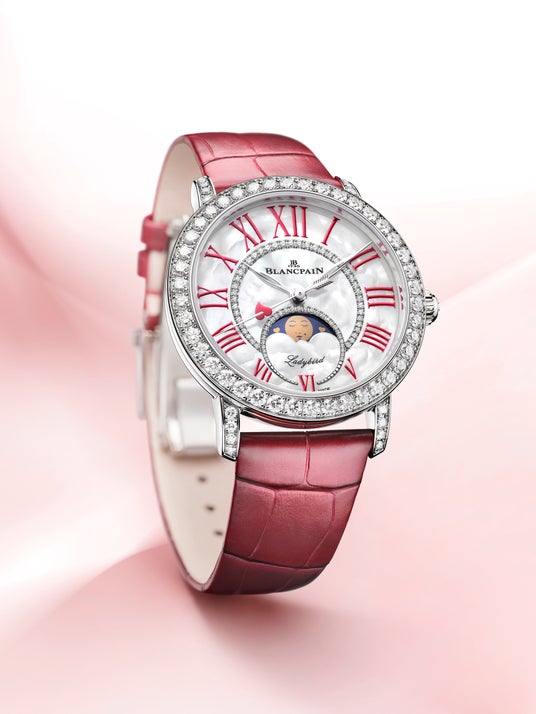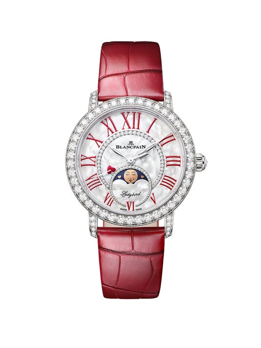 ブランパンは 25 年にわたって世界中の恋人たちを祝福してきました。熱烈な愛の色をまとったレディバード カラーズ バレンタイン 2025 は、女性らしい特徴が加えられたブランパン ムーンフェイズ、そして繊細なゴールドのハートもあしらわれてロマンティックな表情を湛えます。燃える情熱が込められた新しい限定バージョンは、愛する人の心を溶かすためのタイムピース。