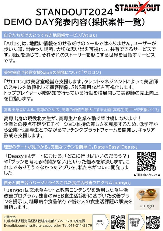 ※ウェブサイト:https://2024standoutdemoday.peatix.com/