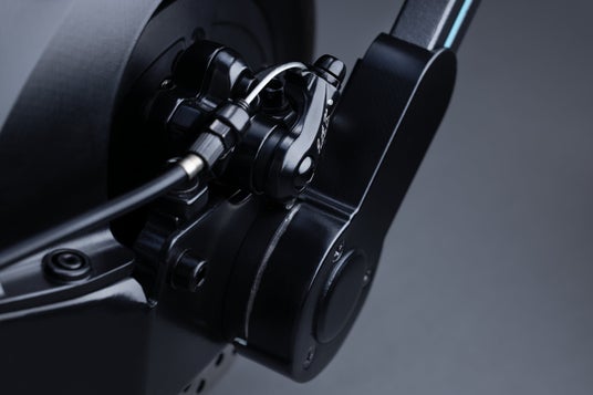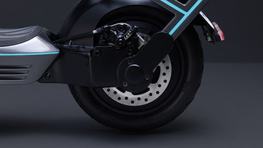 リアホイールには、悪天候でもブレーキ性能が落ちにくく、高い応答性と制動性を持つディスクブレーキを採用。ホイールの設計をよりシンプルにできるため、機体の軽量化にも寄与しています。