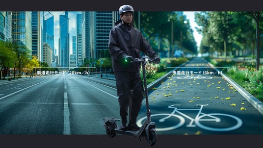 16歳以上であれば、運転免許証が無くても車道を走行できる※2 特定小型原動機付自転車の基準に、また、最高速度6km/hの歩道走行モードでは、歩道も走行できる特例特定小型原動機付自転車の基準に即し車両設計を行っています。※1
