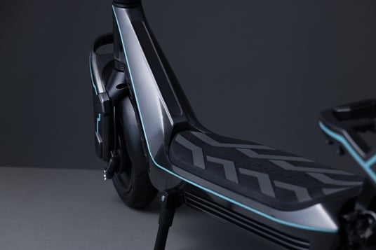 日本の住宅事情・交通事情を考慮し、走行時の快適性と取り回しのしやすさを両立する機体サイズを追求しました。狭い路地での走行時の小回りや、屋内への持ち込みやすさを考慮しながらも、走行時の安定性を両立するため、1,120mmの全長と848mmのホイールベースを採用。一方で、搭乗時に足を乗せるデッキ部の全幅は545mmと余裕を持ったサイズ感とし、長時間の走行でも使用者に負担のかかりにくい設計に。機体の足回りは走破性と機動性の両立を考慮し、8.5インチのホイール径を採用しました。