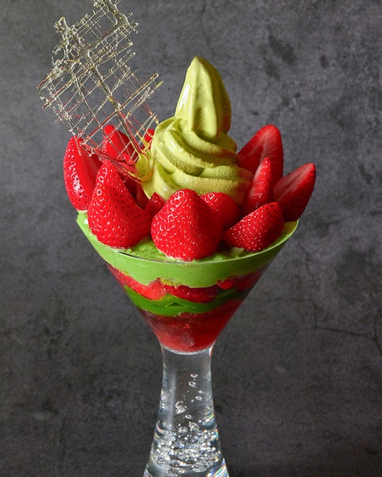 オシャレかつボリューム満点のいちごまみれ「大和抹茶パフェ」