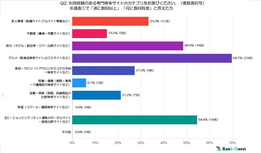 調査結果2.:利用経験のある専門検索サイトのカテゴリをお選びください。[複数選択可(注2)]※ 調査1.で「週に数回以上」・「月に数回程度」と答えた方のみ回答