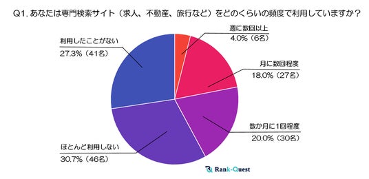 調査結果1.:あなたは専門検索サイト(求人、不動産、旅行など)をどのくらいの頻度で利用していますか?