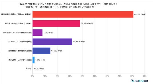 調査結果4.:専門検索エンジンを利用する際に、どのような点を重視しますか?[複数選択可(注4)]※ 調査1.で「週に数回以上」~「数か月に1回程度」と答えた方のみ回答