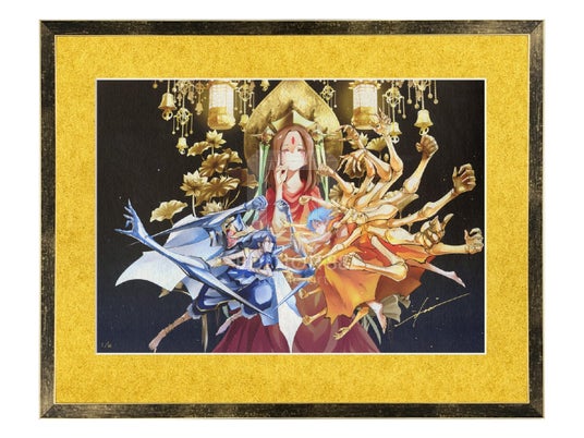 武井宏之先生の直筆サイン入り、エディションナンバーが入った額装品です。手描き原画のイラストは再現度を最大限追求、デジタル作画はきらびやかなシルバー仕様となって新登場。キービジュアルに使用したイラストはゴールドのマットで迫力もありがたさも倍増?になっております。デラックス版はダイナミックなイラストをさらに大迫力の大きさでお楽しみいただけます。