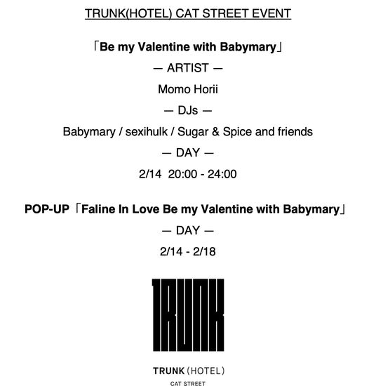 以下、近日実施イベント@TRUNK(HOTEL) CAT STREET