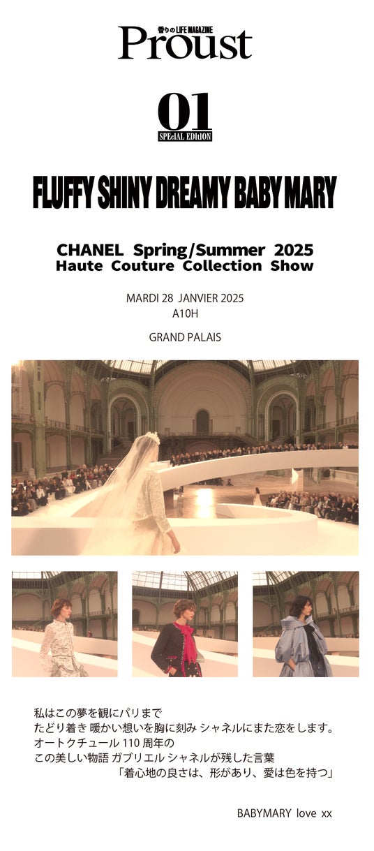 Proust創刊号のコンテンツは随時配信します。「原宿KAWAII」カルチャーを世界に発信し、長きに渡りストリートシーンを牽引し続け世界中のデザイナーから信頼を集めるアイコンBABY MARYの視点から特集する「CHANEL 2025年春夏 オートクチュール コレクションショー」をはじめ、写真家堀口マモル代表作「1/8の瞬間」シリーズなど、多様なジャンルのコンテンツを随時お届けします。最新コンテンツはサイトにてご覧いただけます。