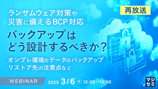 マジセミ株式会社は、大変好評をいただいた「【再放送】ランサムウェア対策や災害に備えるBCP対応、バックアップはどう設計するべきか?」というテーマのウェビナーを再放送します。
