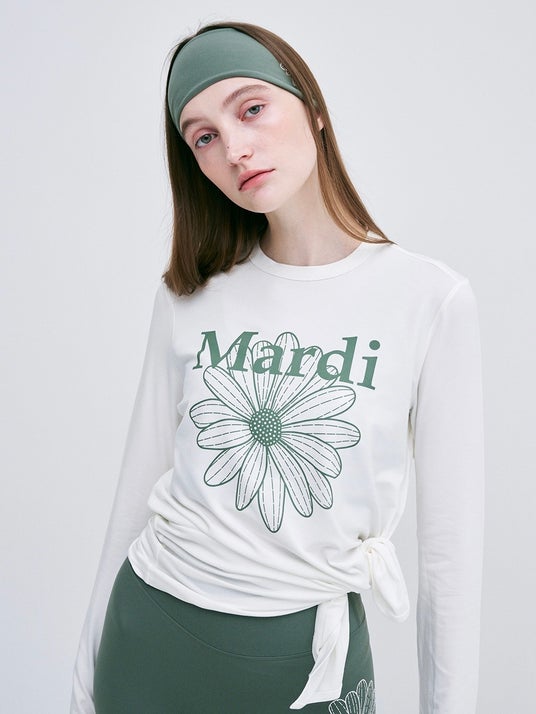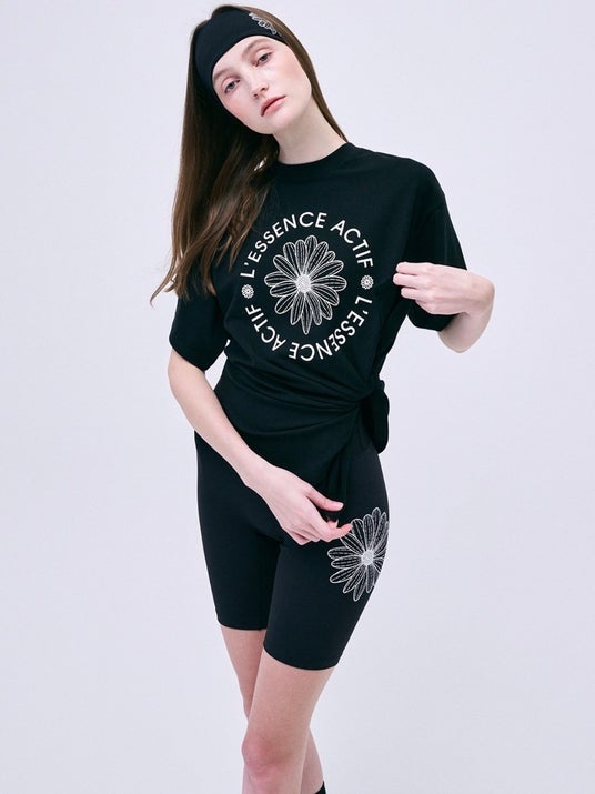 BEURRE ULTIMATE COMFORT wide headband theflower ¥3,300(税込)/ SIDE SLIT T-SHIRT ACTIF EMBLEM¥9,350(税込)