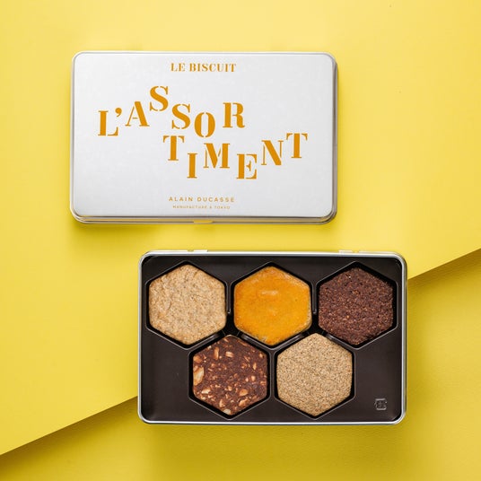 「ル・ビスキュイ・アラン・デュカス」は、「ル・ショコラ・アラン・デュカス」同様に、アラン・デュカスが独自の専門工房で製造販売を行うブランドとして生み出したビスケット専門店です。素材に向き合う料理人の発想で仕立てられる”ビスキュイ“は、複雑に重なる食感に究極の味わいが広がります。