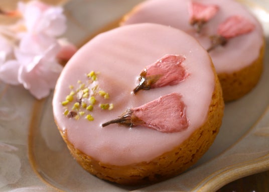 発酵バターとアーモンドの風味豊かな生地にクランベリーを合わせて焼き上げ、上品な桜の香りがふんわりと広がるアイシングを添えました。淡い桜色で可愛らしく仕上げて。