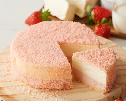 さわやかなチーズに苺の甘みとコクのあるミルク感が調和した苺のフロマネージュ。オーストラリア産クリームチーズやサワークリームに苺のピューレと果肉ソースを合わせた苺チーズムースを、もっちりとした餅で包み、春色のふわふわクラムをまぶしました。ひと口食べると、十勝産ジャージーミルクがとろりと溶け出し、より深いミルクの味わいに。ふわ・もち・トロッとした食感の変化を楽しめるスイーツです。