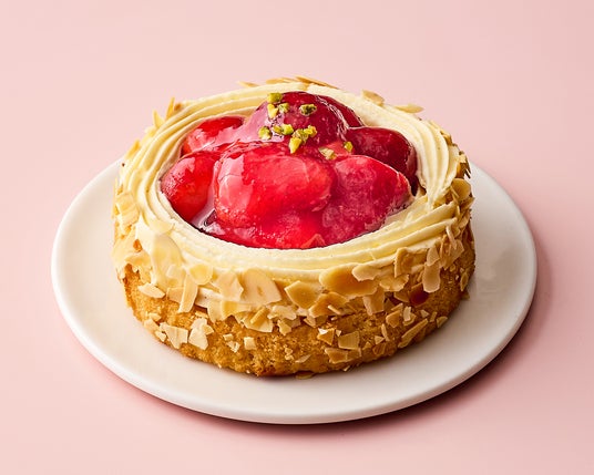 程よい酸味となめらかな口どけのニューヨークチーズケーキに、ミルキーなマスカルポーネムースとカスタードシャンティを重ねました。仕上げに苺をふんだんに飾り、周りにはシャンティとアーモンドクランチをまとわせています。