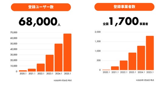 2025年1月現在、登録者ユーザー数は6.8万人を超え、大学生や社会人、転職活動中の方、シニアまで幅広い年齢層の方にご参加頂いています。受け入れ事業者数は全国47都道府県 1,700事業者に拡大。業種はホテル・旅館など宿泊業と一次産業とが中心ですが、それ以外にもゲストハウスやキャンプ場、酒造会社や水産物の加工業や飲食店など多種多様です。