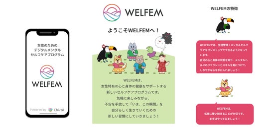 キラル株式会社(本社:東京都、代表取締役:下川千草)は、Z世代の女性向けデジタルメンタルセルフケアアプリ「WELFEM(ウェルフェム)」を、2025年2月14日にリリースいたしました。