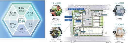 本物件では、循環と環境を住まいながら学べるウェルビーイングなコミュニティの形成をめざしています。「食」の循環、「ゴミ」の循環、「材」の循環、「森」の循環により、何気ない日常からサステナブルな生活を学び、自然を通じて交流を深める新しいスタイルの住まいを実現します。