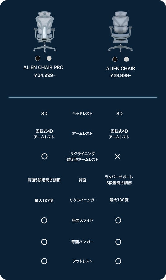 ハイグレードモデルであるエイリアンチェアプロも同時発売!