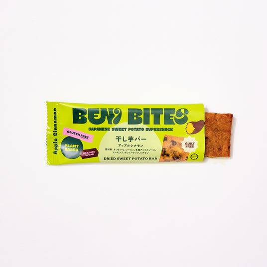 「新発想の干し芋バー*」子どもから大人まで愛されている日本の伝統的な健康食である干し芋をもっと手軽に食べることができたら。そんな思いから生まれたBENI BITES。鹿児島・桜島の溶岩で長時間かけて焼き芋にした「べにはるか」を丁寧に干し芋にし、独自の製法で甘さと栄養を閉じ込めバーに仕上げました。(全4種~、希望小売価格:380円(税抜) / 52g)*商標登録済。特許出願中