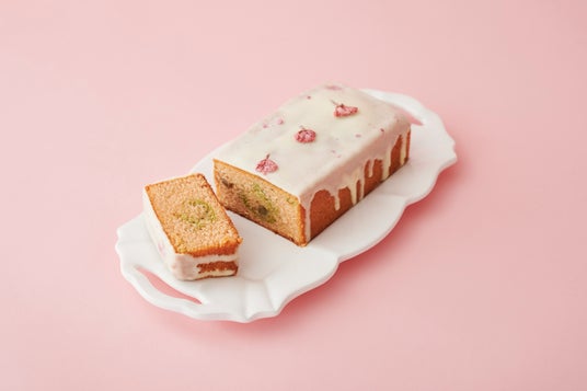 桜の花びらや桜餡、蜂蜜をたっぷりつかった淡いピンクの生地に、抹茶とかのこ豆を加えて焼き上げました。カットすると淡いピンク色の生地の中から鮮やかな緑色が現れる、春らしい春季限定のパウンドケーキです。
