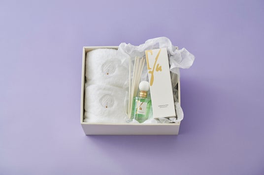 麻布台ヒルズでしか購入できない、2店舗のコラボBOXが登場。ハイエンドホテルでも採用されている最高峰の使い心地のフェイスタオルと、イチジクの葉の少し丸みを帯びたグリーンノートが主役となった、フレッシュさと癒しを感じるディフューザーのセットは、ご自宅での時間をより上質なものへと導いてくれます。