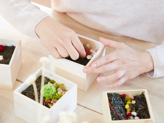 香炉にのせる「茶葉」を制作する、EXサービス限定プラン。お茶のやさしい香りには、リラックス効果や消臭効果があり人工的な香りが苦手な方にもおすすめ。制作した茶香炉はお持ち帰りいただき、癒しのひとときをお楽しみください。