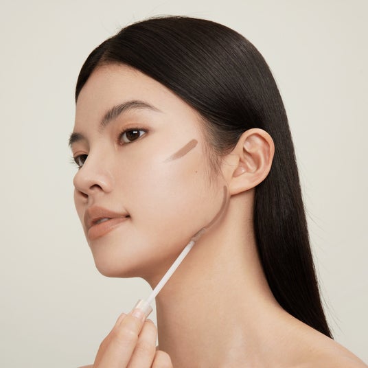 白浮きせず肌になじみやすいアイボリーベージュと自然なツヤ感でパッと明るい印象に。凹みをカバーし自然に明るさをプラス。