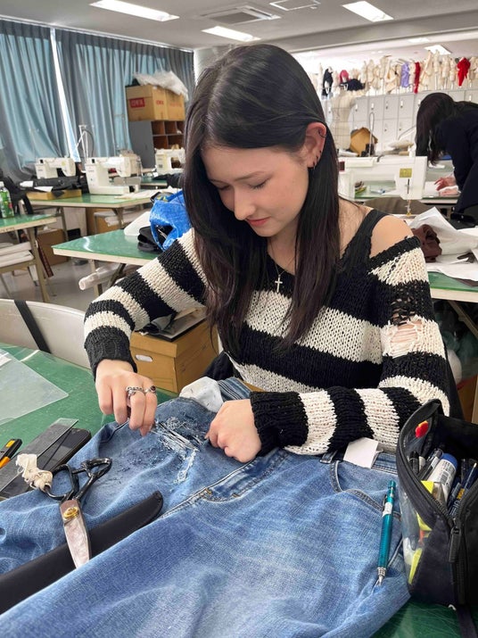 入学者の9割が服づくり未経験という環境で、ファッションを学んできた学生たち。今回の6名も未経験から学び始めました。ファッション工科専門課程は、服づくりの知識と技術を蓄え、マーケティング、企画、デザイン、生産といったあらゆる工程で高い専門性を持ったスペシャリストを育成する課程です。学生たちは服飾に関する高度な技術を身に付けながら、ファッションを網羅的に学んできました。またファッション工芸専門課程では、ファッション表現のベースとなるテキスタイルと、ファッションの重要な要素であり、細部を彩るグッズ制作における専門知識と技術を体系的にその習得。その成果がこのファッションショーで表現されます。