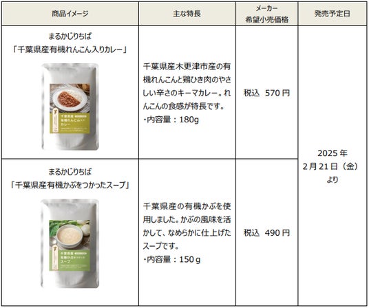 無添加調理※で商品作りを進めている石井食品株式会社(本社:千葉県船橋市、代表取締役社長執行役員:石井智康、以下、「石井食品」)は、 “有機の里づくり”千葉県団体連絡会(通称:ちばだん)と無印良品を展開する株式会社良品計画(千葉事業部)との3者にて、千葉県においての有機野菜の生産普及、販売・活用の促進などを中心に、有機の里づくりへの取り組みを2022年4月よりスタートしました。この取り組みの更なる促進と、千葉産品の魅力をもっと伝えていけるよう、ちばだんが展開する、~千葉の誇りにかけて素材にまっすぐ~をコンセプトにかかげた千葉産ローカル&オーガニックブランド「CHIBABIO-ちばびお」の、3者間の共同企画・開発商品である「まるかじりちば」シリーズから、今回、新たに「千葉県産有機れんこん入りカレー」「千葉県産有機かぶをつかったスープ」の2商品の発売を、2月21日(金)より開始いたします。