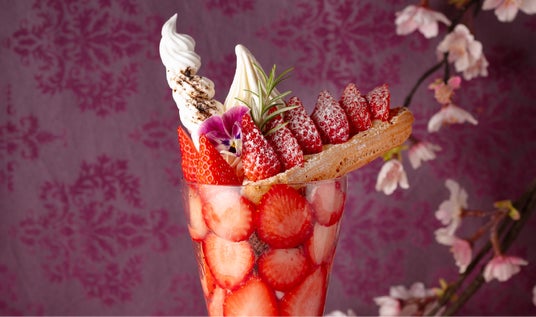 「いちごと桜のパフェ」と「いちごのパブロヴァ」を2カ月限定で販売