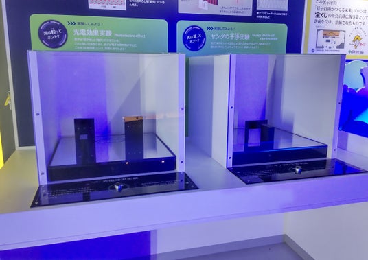 量子技術に応用される科学原理を「光電効果実験」と「ヤングの干渉実験」の装置展示で体験できます。