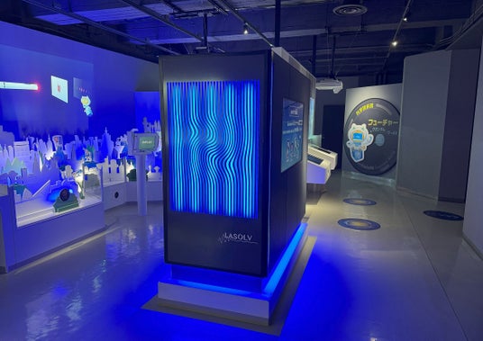 日本電信電話株式会社による、光を使ったコンピューター「LASOLV」の原寸モックアップを展示しています。