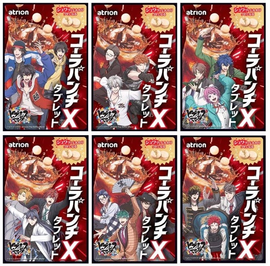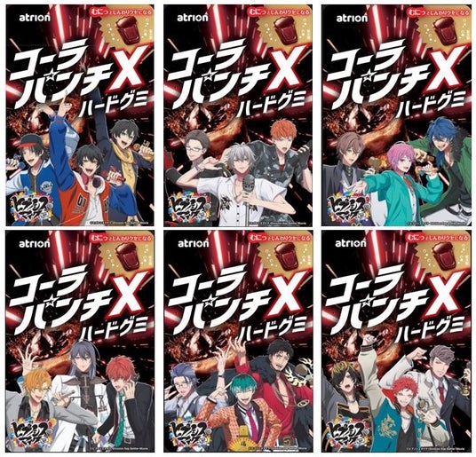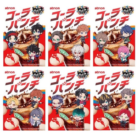 3つの商品にはそれぞれ「ヒプノシスマイク」に登場する6つのディビジョンごとの異なる6種のデザインで展開し、全部で18種類のパッケージ。「コーラパンチ」には描きおこしのかわいらしいミニキャラが登場します。