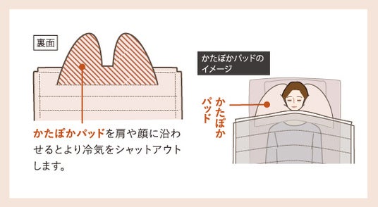 『かけねぶくろんリッチプラス』には、首や肩に沿わせることで冷気をシャットアウトする「かたぽかパッド」が付いています。