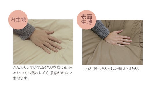 お手持ちの掛け布団の上にかけて使用すると、ふんわりと軽い掛け心地でありながら、意外なほど体があたたまります。